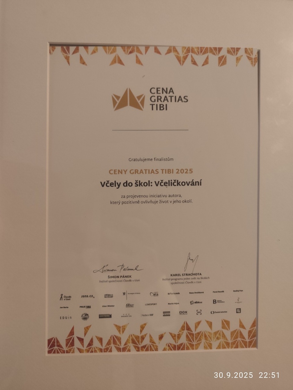JAKUB BLÁHA - Mladý člen spolku VČELÍ STRÁŽ,z.s. a člen kroužku RAKOvčelaříci se stal finalistou CENY GRATIS TIBI, která mu byla předána 30.9.2025 na velvyslanectví Norského království v Praze. GRATULUJEME! Jakub se stal i vítězem letošního ročníku soutěže ZLATÝ OPYLOVATEL.