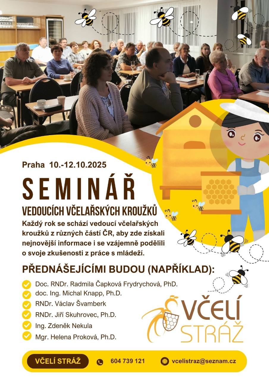 VČELÍ STRÁŽ, z.s. pořádala v termínu 19. - 21. října 2018 v Praze (Hotel MAtura) svůj tradiční celostátní Seminář pro vedoucí kroužků včelařské mládeže. Program semináře naleznete zde PROGRAM.docx (50880).